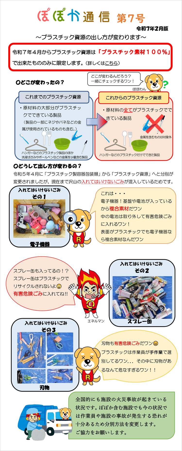 ぽぽかにきたごみがリサイクルされるまでを、キャラクターがご案内。